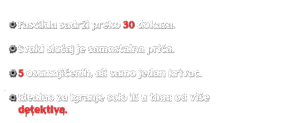 Fascikla pred vama krije sve tragove koji vode do istine. Unutar nje možete pronaći izjave, zapažanja, obdukcijske i forenzičke nalaze, privatne poruke, mape, fotografije i razne druge materijale. Svaka riječ, pokret i vremenska nedosljednost mogu biti ključni. Tu se nalazi sve – ako znate gdje gledati.